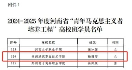 近日,共青团河南省委公布了2024-2025年度河南省“青年马克思主义者培养工程”高校班学员名单。太阳成集团tyc33455cc人工智能系的杨雅雯同学从300多名学员中脱颖而出,成功入选。本次“青马工程”高校班学员共100余名。