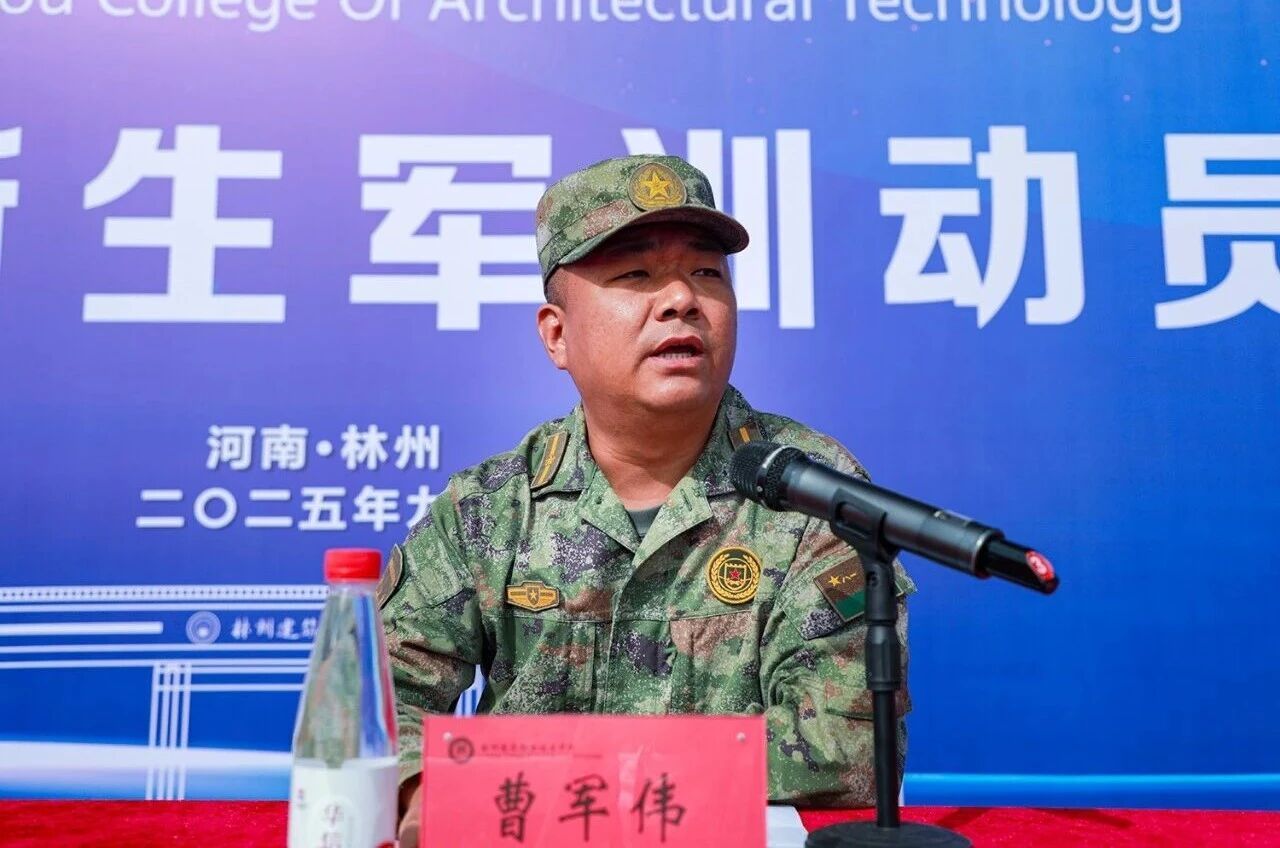 林州市人武部军训负责人曹军伟受邀作动员讲话。他结合国防教育要求,向新生们介绍了军训的科目设置与安全规范,并勉励大家:“军训是接触国防、了解军队的重要窗口,要以军人标准严格要求自己,在训练中学习军事技能、增强国防观念,把军人的优良作风转化为未来学习和生活的动力。”