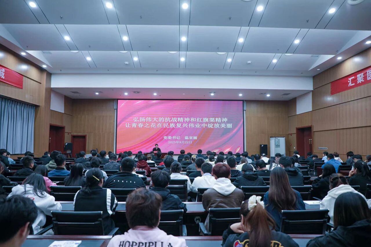 开班仪式结束后,党委书记温亚丽以《弘扬伟大的抗战精神和红旗渠精神---让青春之花在民族复兴伟业中绽放美丽》为主题做开课第一讲。