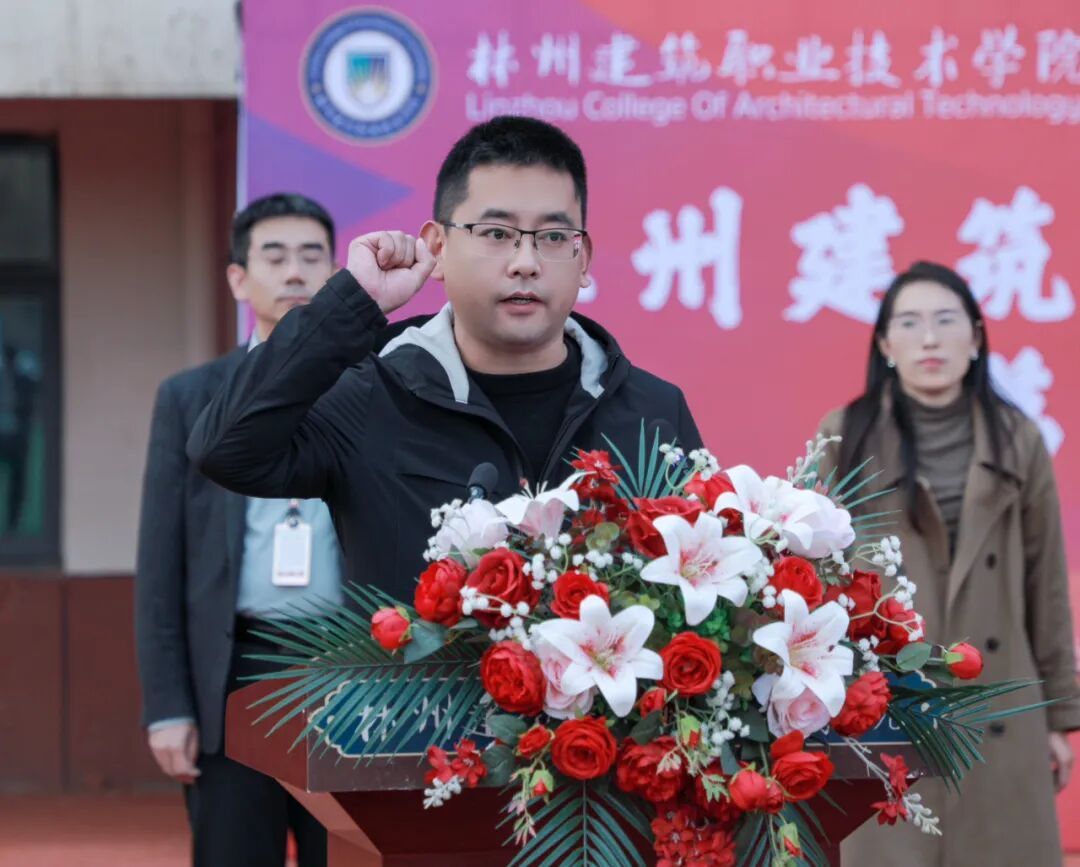 林州建院党委副书记、副校长、工会主席郭鹏,详细宣读了运动会竞赛规程及纪律要求。郭鹏强调,赛事将坚守公平公正原则,严守安全参赛底线,为全体参赛者打造规范有序、安心竞技的良好环境,为赛事圆满举办筑牢坚实保障。