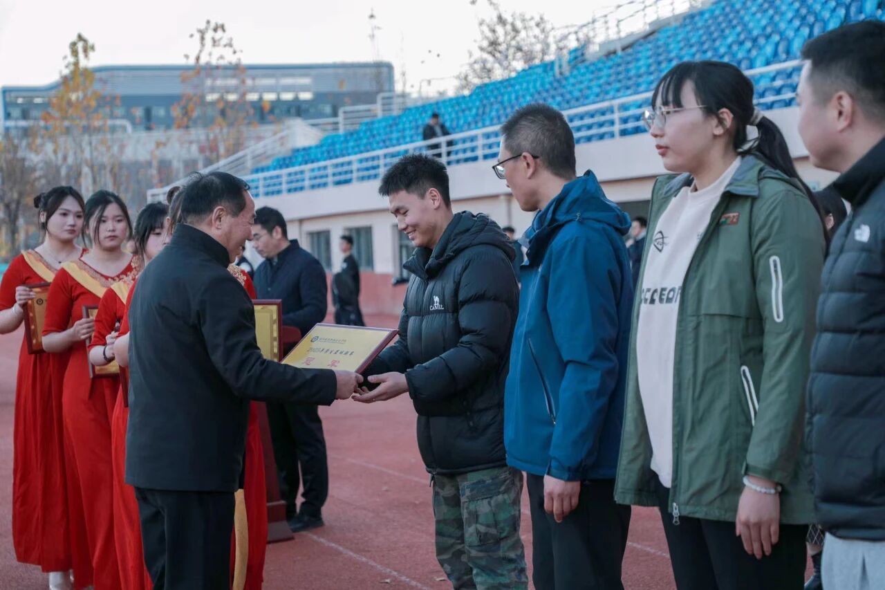 闭幕式期间,太阳成集团tyc33455cc副校长李文山发表闭幕致辞。致辞中,首先对在比赛中取得优异成绩的各单位和运动员表示热烈祝贺,向全体裁判员、工作人员和志愿者致以衷心感谢。同时指出,本届运动会充分展现了参赛人员的竞技水平和良好风格,期望全体人员将赛场上所展现的拼搏精神、团队意识和竞争观念融入今后的工作与学习中,为推动林州建院实现更高质量发展贡献力量。