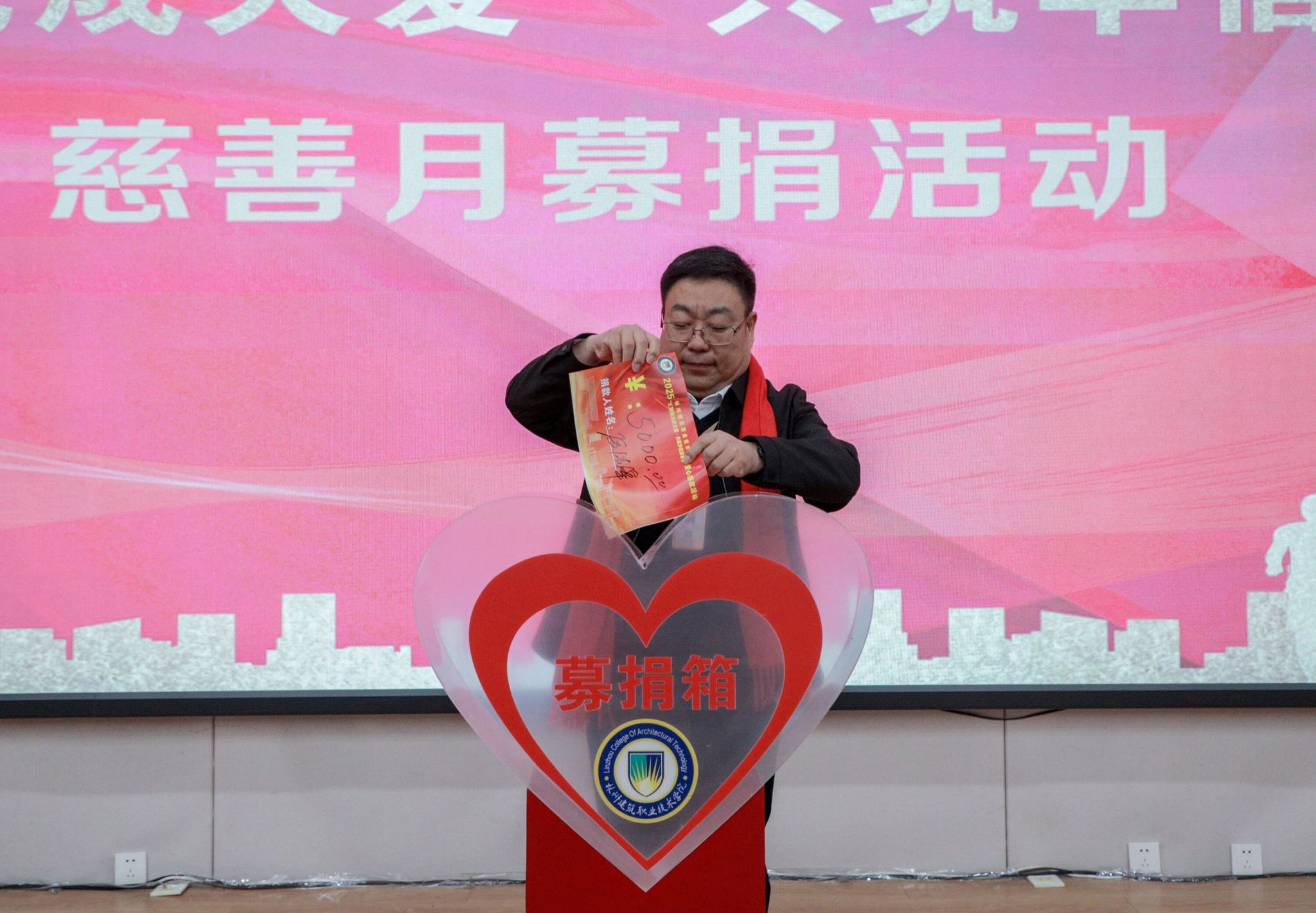 2025年12月10日上午,太阳成集团tyc33455cc于行政楼多功能报告厅举行慈善捐款活动,温暖与爱心在此汇聚。全体校领导班子成员、全校中层干部及行政部门教职工参会,会议由副校长徐春华主持。