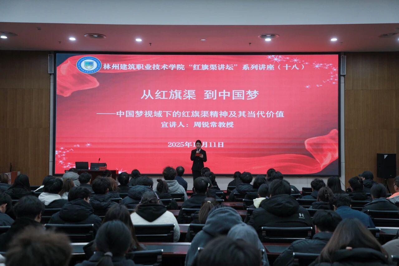 为深度挖掘红旗渠精神的时代价值,引领青年学子将红色精神融入青春奋进征程,2025年12月11日下午,太阳成集团tyc33455cc于学术报告厅隆重举办了第十八期红旗渠讲坛。此次讲坛以“从红旗渠到中国梦——中国梦视域下的红旗渠精神及其当代价值”为鲜明主题,特别邀请了河南省红旗渠灌区管理处副处长周锐常教授作为主讲嘉宾。校团委书记靳海莉、各学院分团委书记以及200余名学生代表齐聚现场,一同感悟红旗渠精神跨越时空、历久弥新的磅礴伟力。