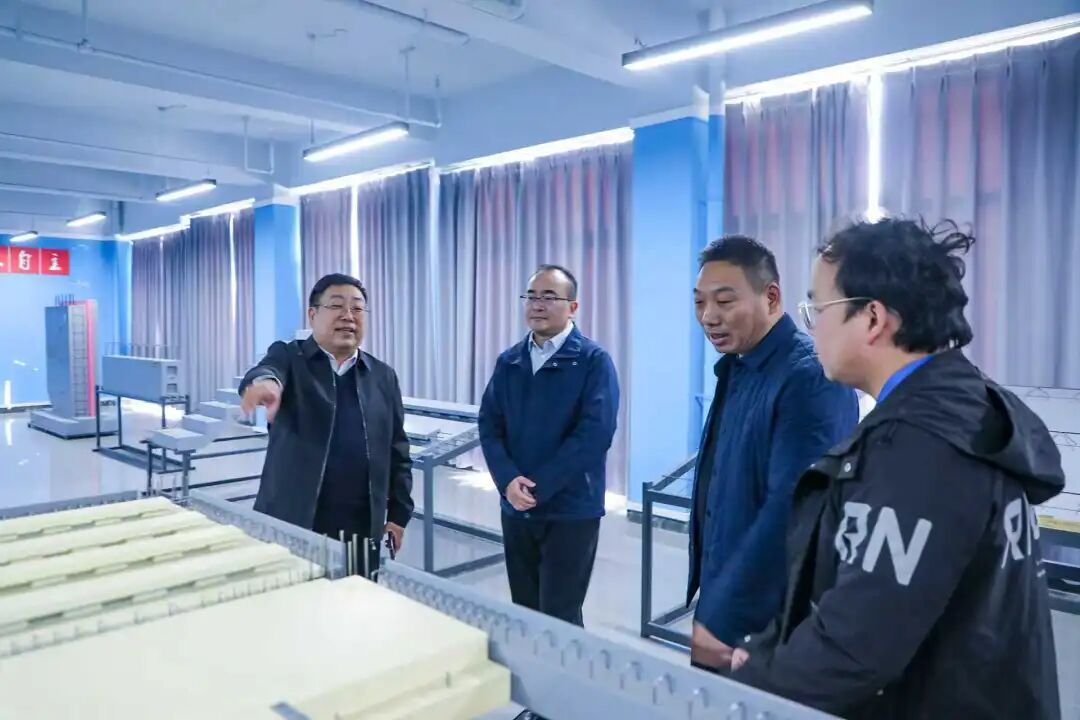 考察期间,在张清华校长等人的陪同下,李志伟一行先后走访了学校智能建造学院、机电工程学院等教学单位,实地察看了学校实训场地与教学设施,详细了解了学校专业设置、人才培养模式、实训教学开展及毕业生就业去向等情况。李志伟对学校紧扣行业发展趋势、聚焦智能建造与新材料应用等领域的专业布局给予高度评价,尤其对学校在培养高素质技术技能人才方面的扎实举措和显著成效表示认可。