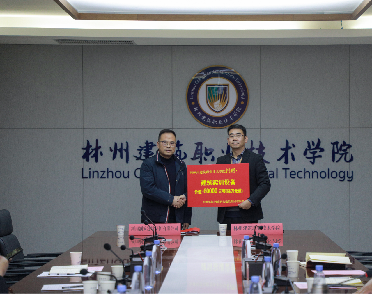 在全场嘉宾的见证下,李庆祥董事长与张清华校长共同签署校企合作协议,正式确立双方战略合作伙伴关系。随后举行教学设备捐赠仪式,白广涛总经理代表集团向学校捐赠价值6万元的建筑实训设备,副校长李超杰代表学校接收捐赠,这批设备将为学生实训教学提供有力保障。