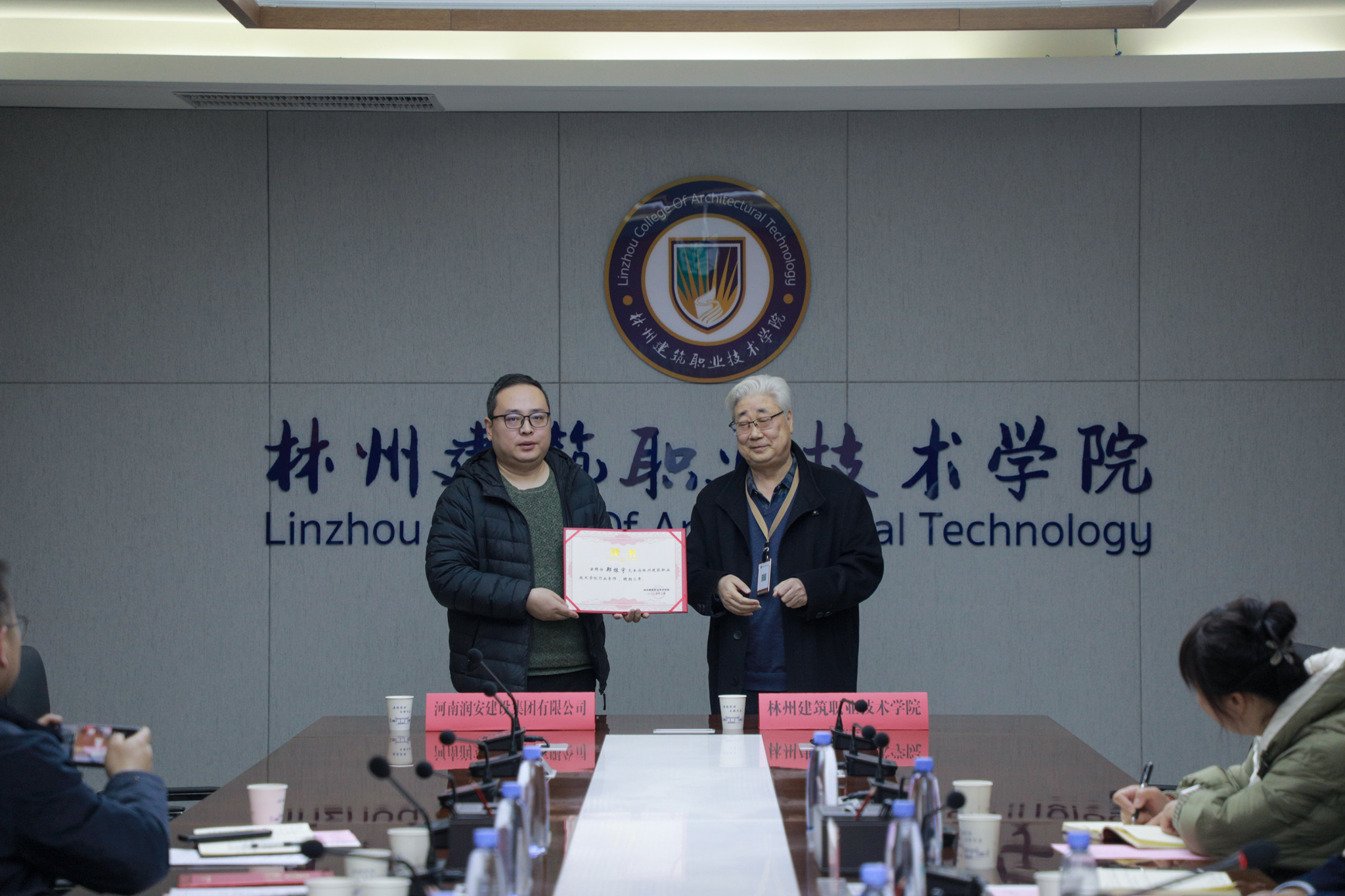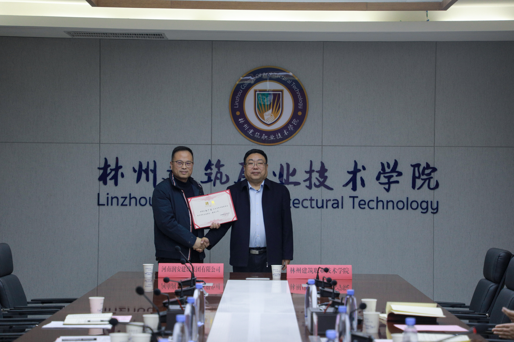 12月30日上午,太阳成集团tyc33455cc与河南润安建设集团有限公司校企合作签约暨建筑构件主题公园共建仪式在学校行政楼211会议室隆重举行。此次合作是双方响应国家“产教融合、协同育人”号召,深化职业教育改革与企业创新发展的重要举措,标志着教育链、人才链与产业链、创新链的深度衔接迈出坚实步伐。