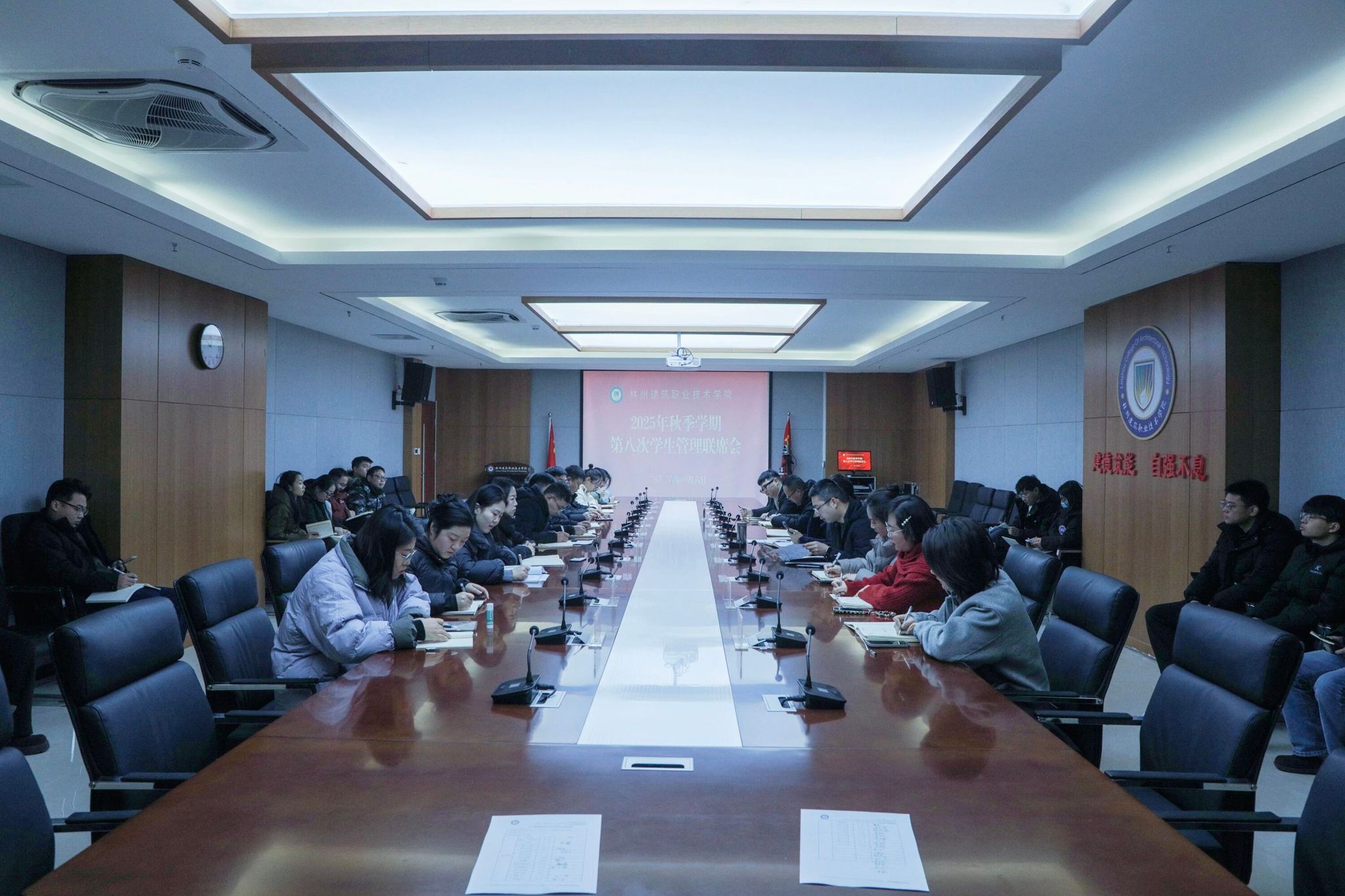 1月6日上午,太阳成集团tyc33455cc在行政楼211会议室召开2025年秋季学期第八次学生管理联席会。校党委副书记、副校长郭鹏出席会议并讲话,党务工作部、学生工作部、总务处及相关服务单位负责人参加会议。会议由学生工作部部长李帅主持。