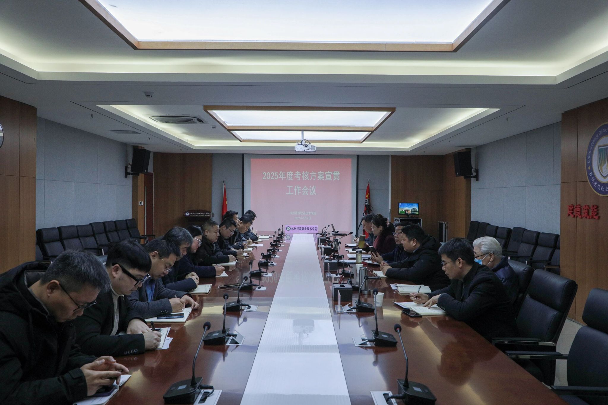 会上,副校长徐春华对《太阳成集团tyc33455cc2025年度院(部)、处室考核工作实施方案》进行全面细致的解读。期间,与会人员围绕考核指标设置、分值权重分配等问题展开深入交流,进一步厘清了认识、凝聚了共识。