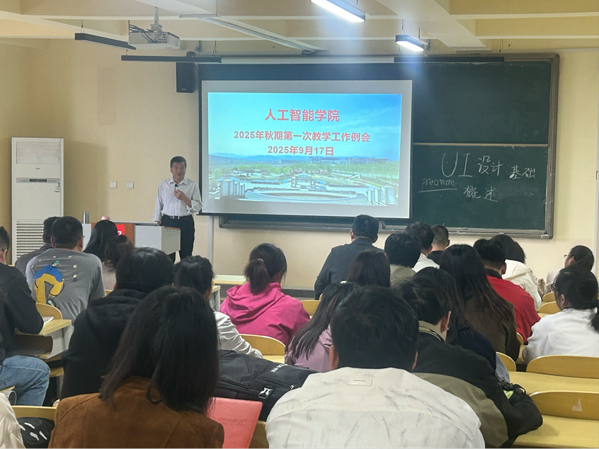 9月17日下午,人工智能学院在2号教学楼召开2025年秋期第一次教学工作例会,会议由学院院长沈献博主持并发表讲话,全体教师参会。
