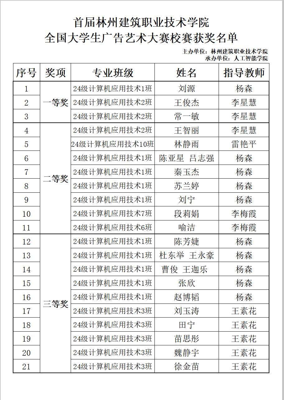 首届校赛获奖名单