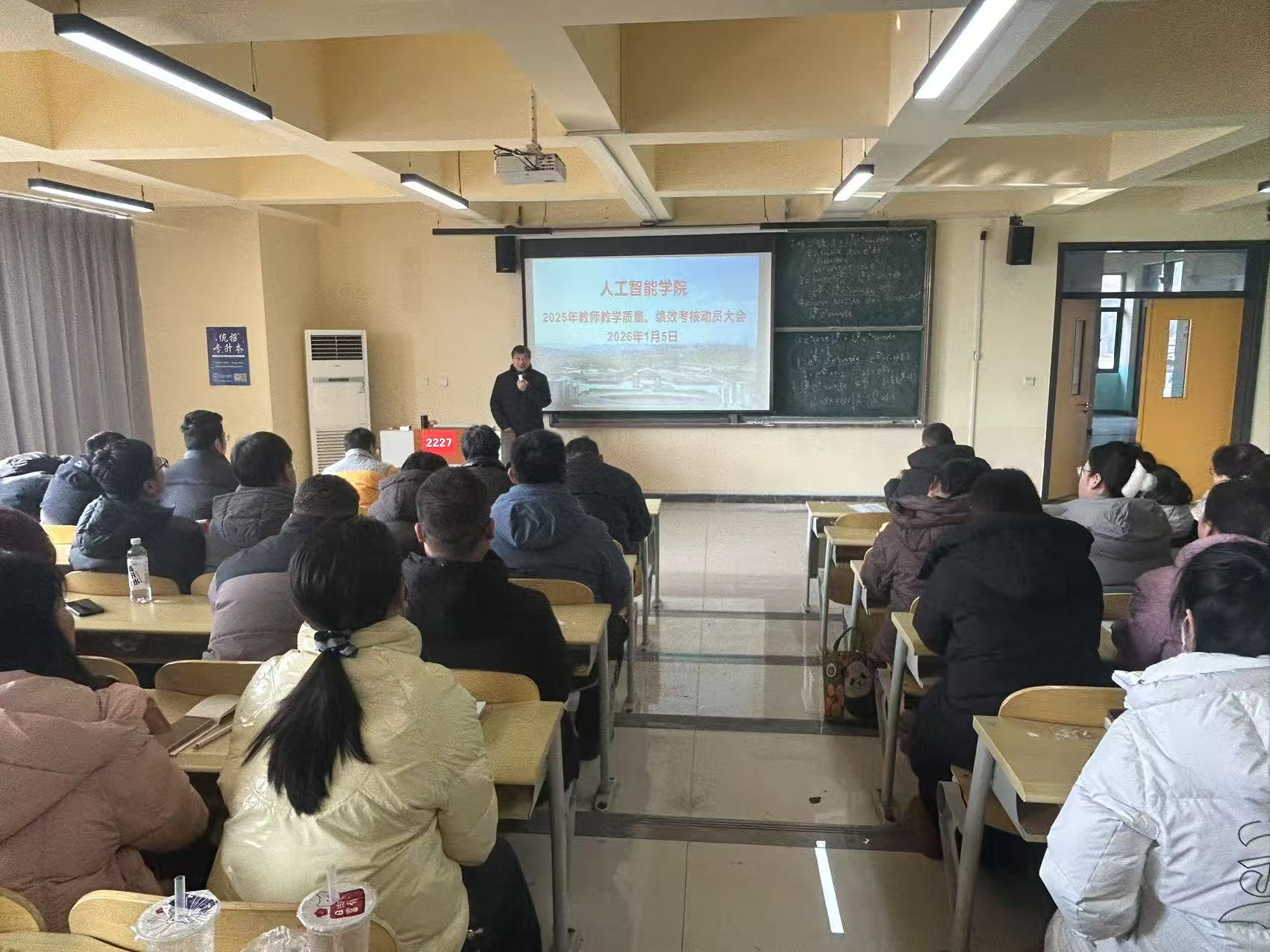 2026年1月5日,人工智能学院组织召开2025年秋期期末考试暨教师教学质量、绩效考核动员大会。学院院长沈献博、教学科研副院长刘杰及全体教师参加会议。
