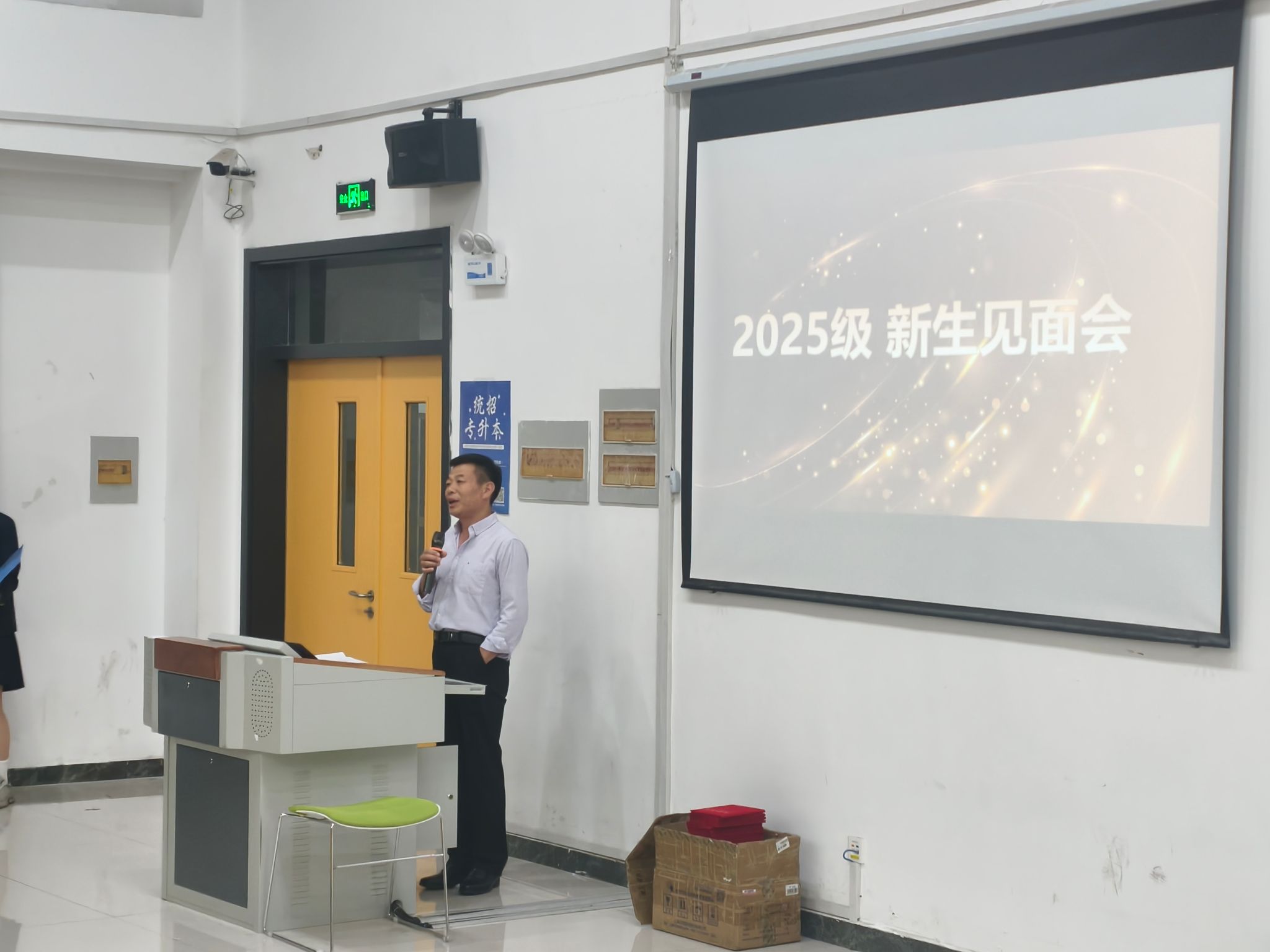 大会在热烈期盼中拉开帷幕。艺术与教育学院院长赵春山教授首先登台,发表了情真意切、高瞻远瞩的致辞。他代表全院师生对2025级新生的到来表示最诚挚的欢迎,称他们为学院注入了“最鲜活、最澎湃的血液”。赵院长以师者的睿智与长者的温情,娓娓道来,不仅关切地询问了新生们入学后的生活适应情况,更从学术追求、人格塑造与艺术理想三个维度,对同学们提出了殷切期望。他勉励新生要“于经典中汲取养分,于生活中发现真知”,既要锤炼扎实的专业功底,更要涵养深厚的人文情怀与独立的批判精神,在艺术与教育的交叉领域中,找到属于自己的独特坐标,成长为引领未来的卓越人才。院长的讲话如秋日暖阳,温暖而充满力量,深深烙印在每一位学子的心中。