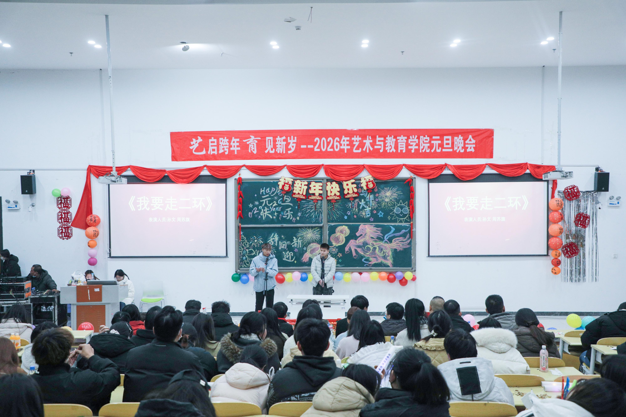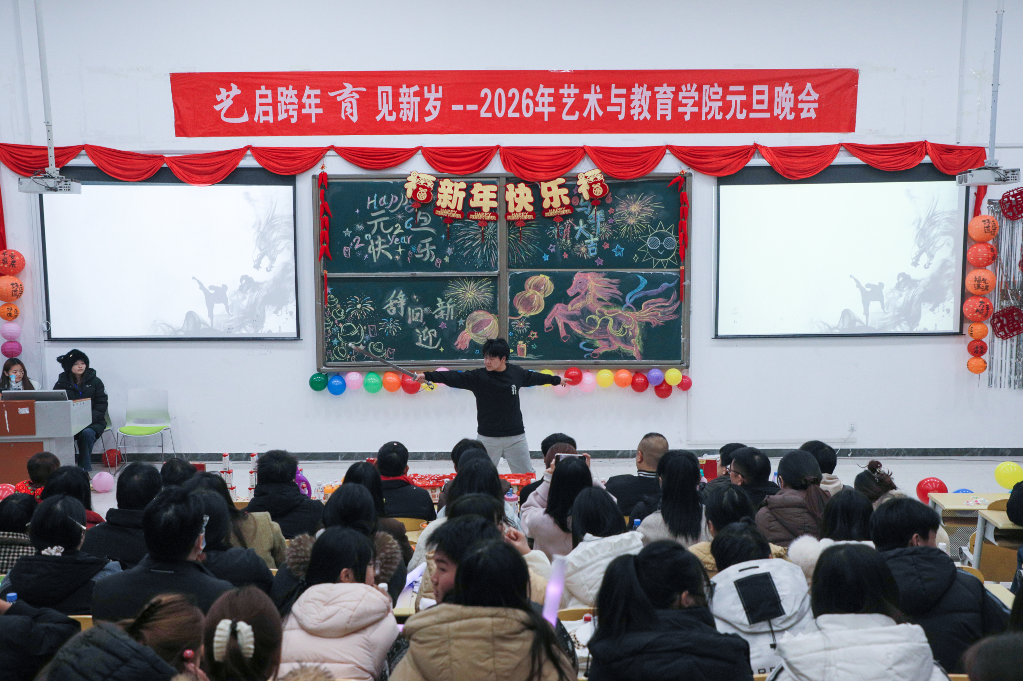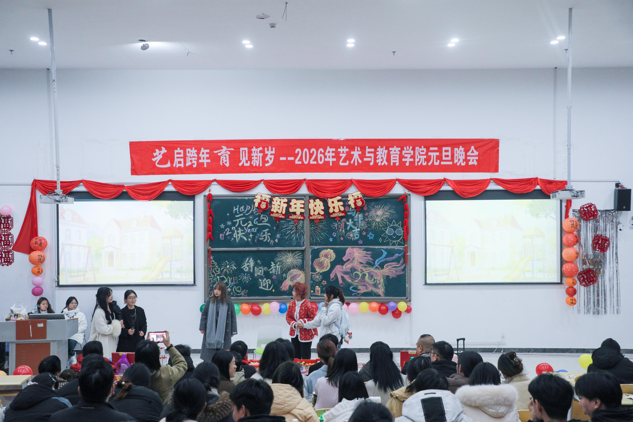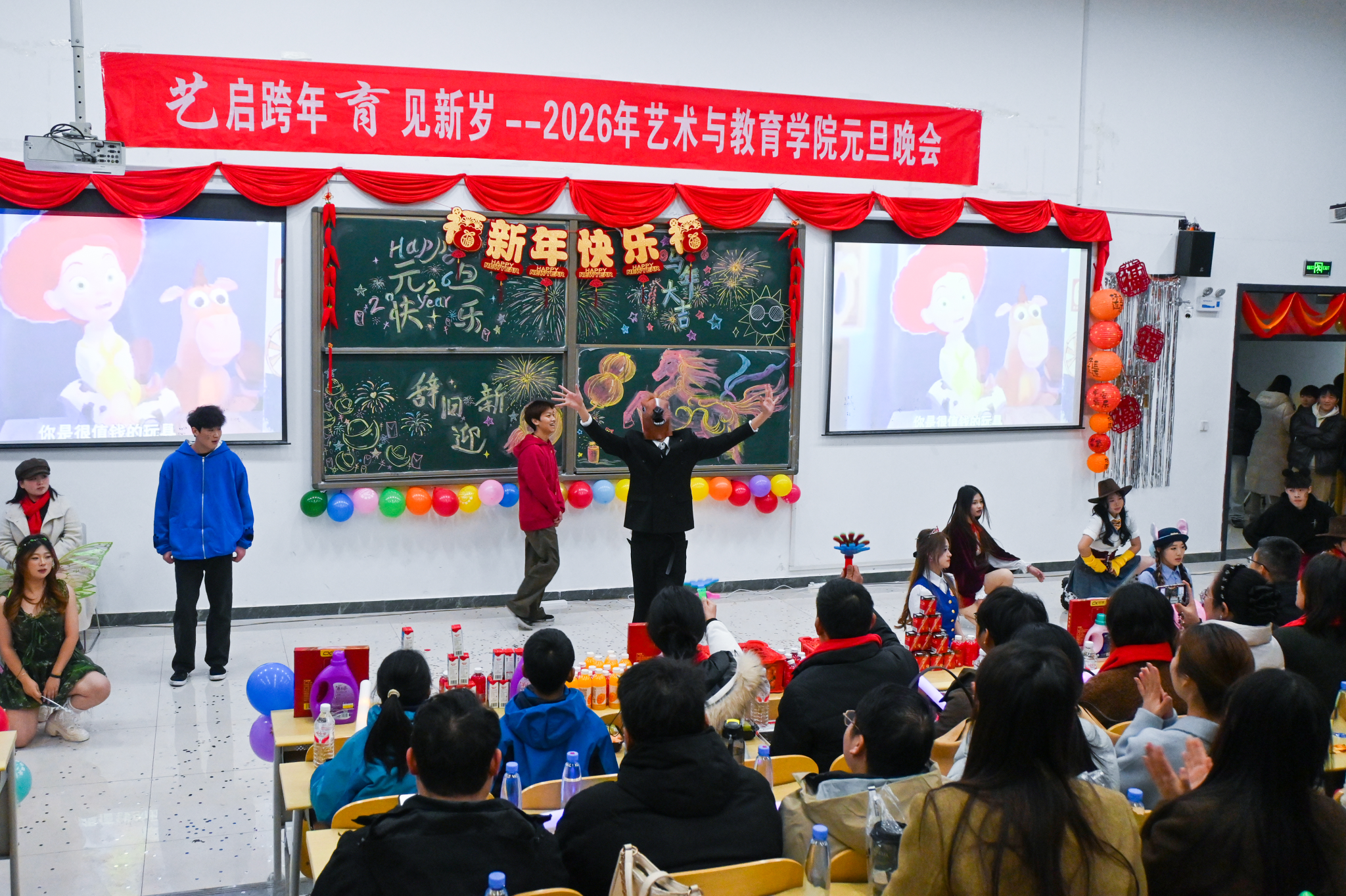 灯光流转间,教室被精心布置得温馨雅致,彩带与气球相映成趣。这场汇聚歌声、舞蹈、小品、武术、相声的视听盛宴,每一个节目都凝聚着大家的创意与心血,生动诠释了艺术与教育学院学子的多才多艺与青春活力,为在场的领导、老师与同学们留下了难忘的跨年记忆,也为2025年画上了圆满的句号。