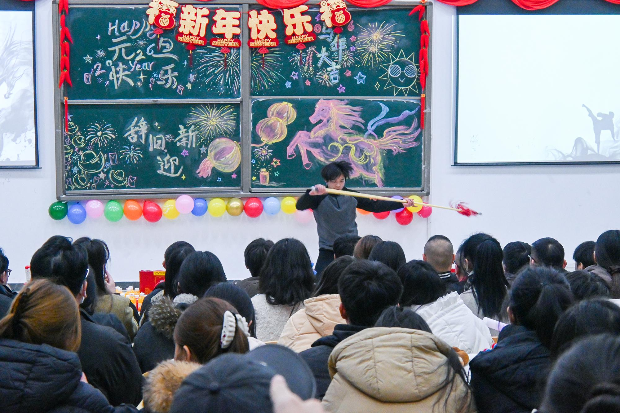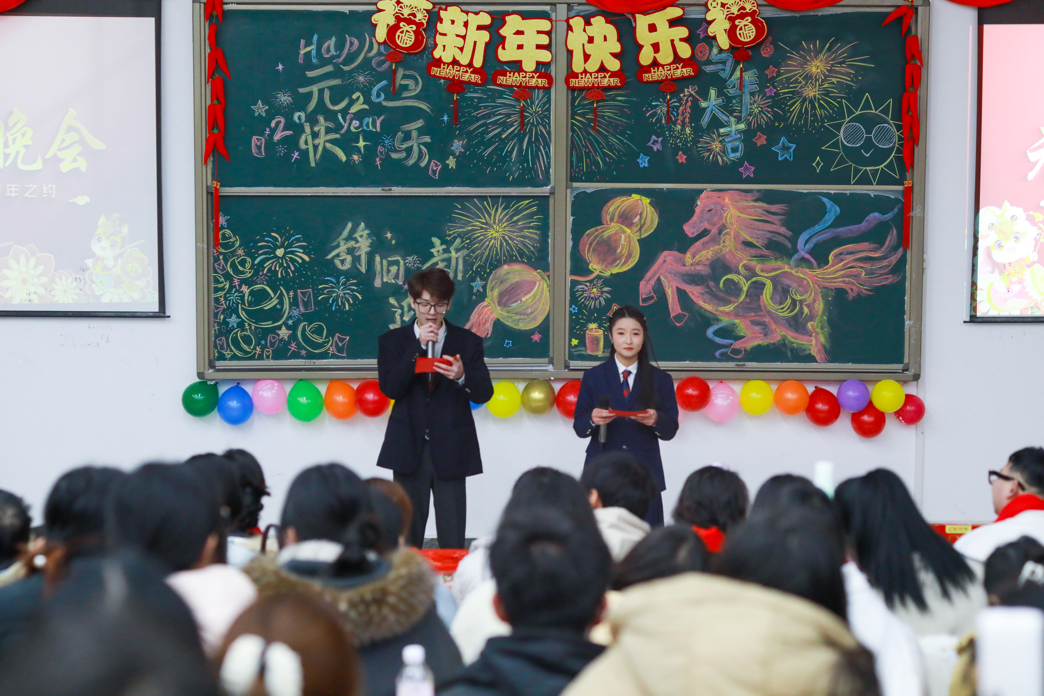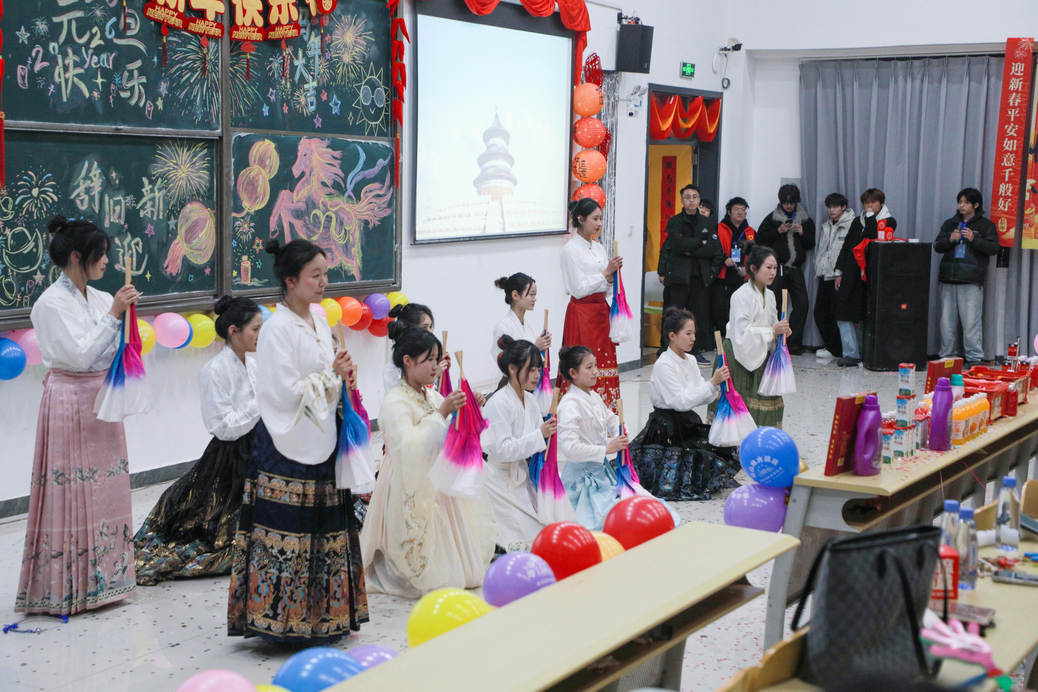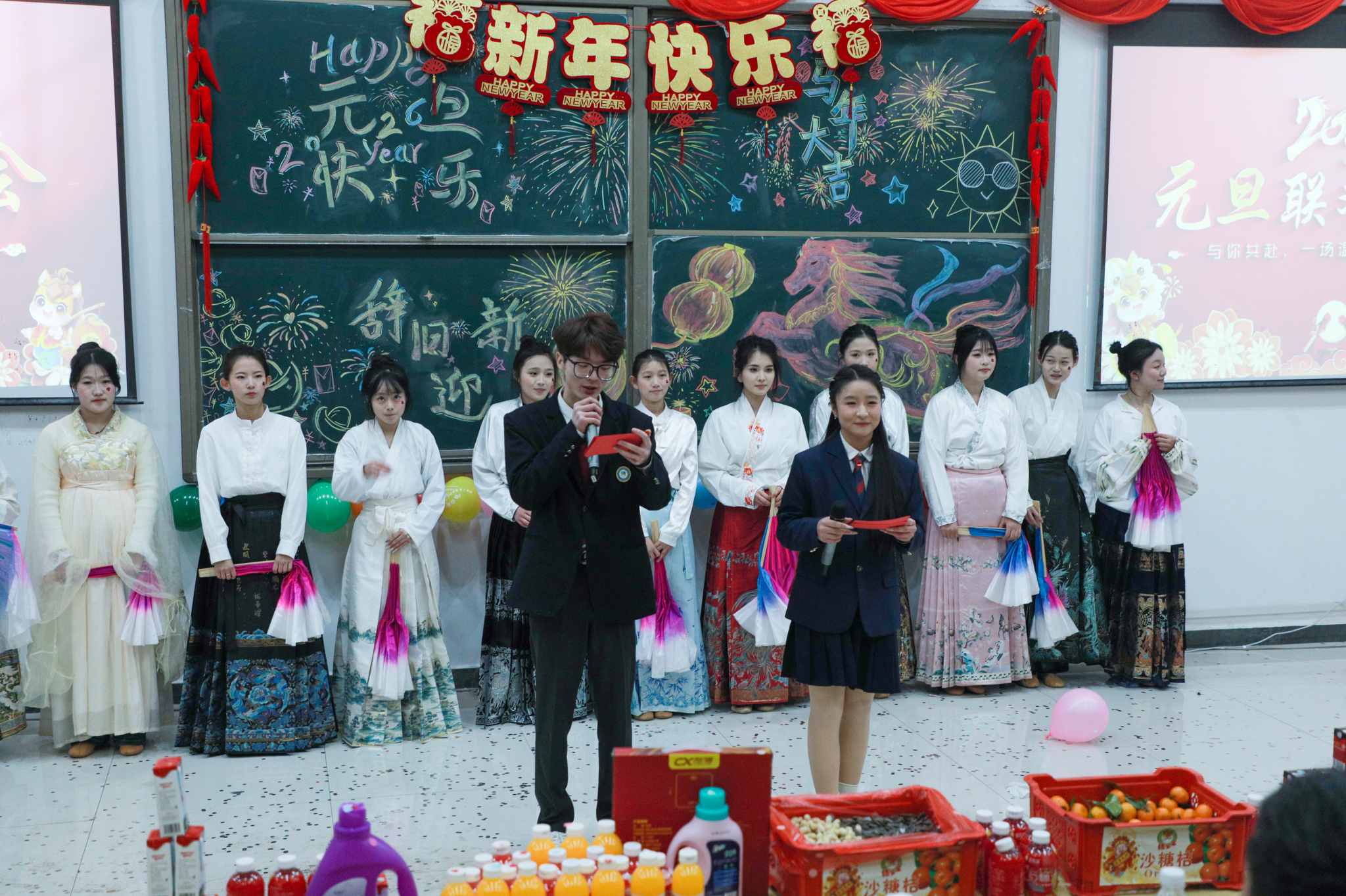 灯光流转间,教室被精心布置得温馨雅致,彩带与气球相映成趣。这场汇聚歌声、舞蹈、小品、武术、相声的视听盛宴,每一个节目都凝聚着大家的创意与心血,生动诠释了艺术与教育学院学子的多才多艺与青春活力,为在场的领导、老师与同学们留下了难忘的跨年记忆,也为2025年画上了圆满的句号。