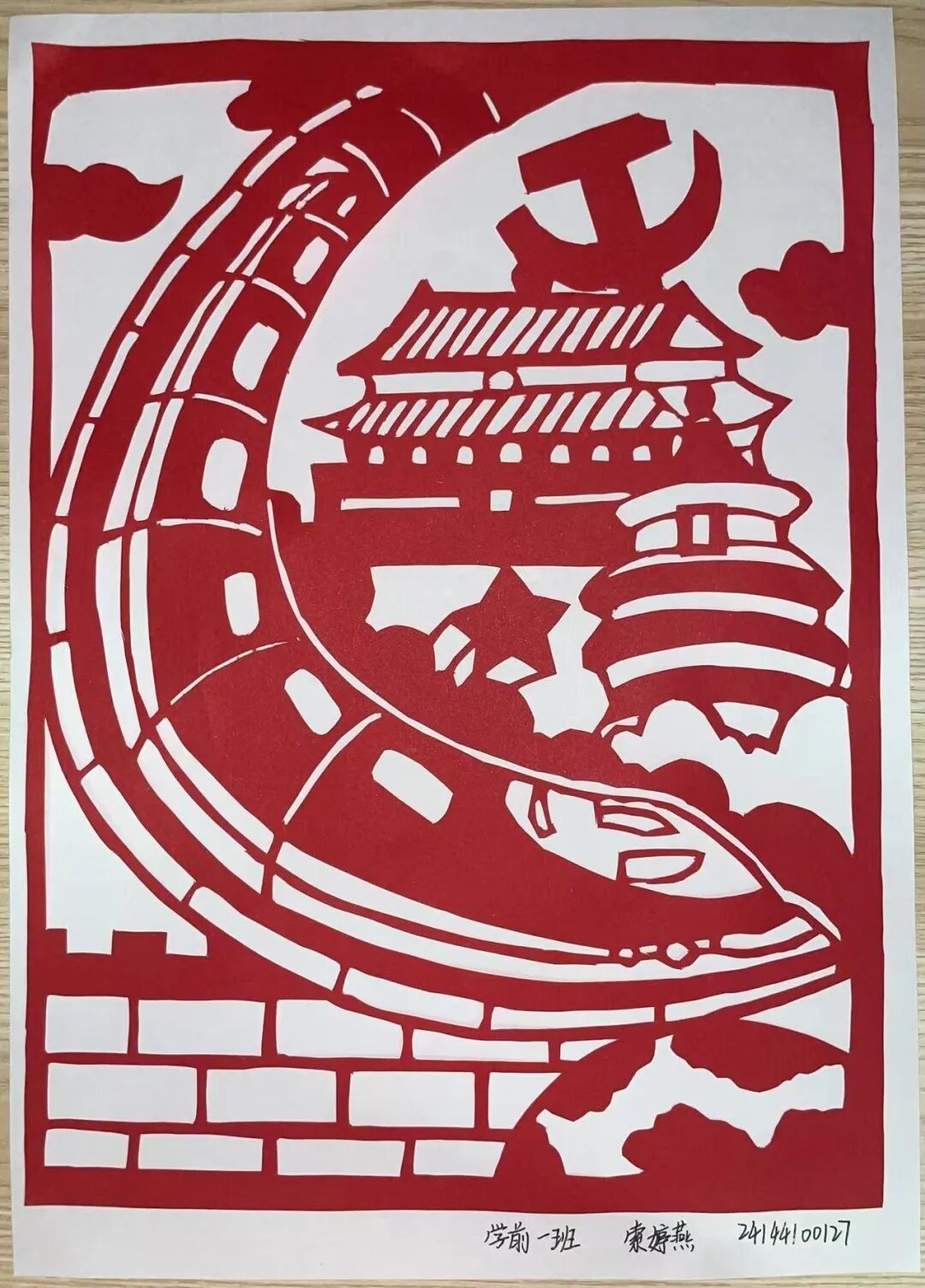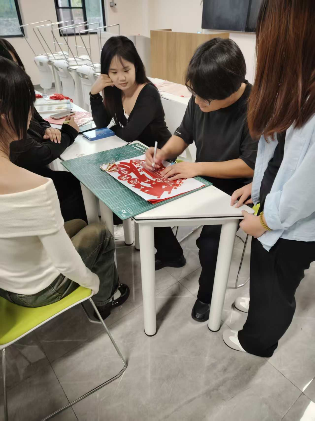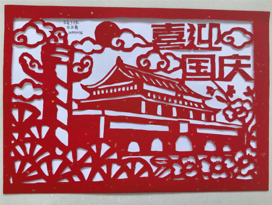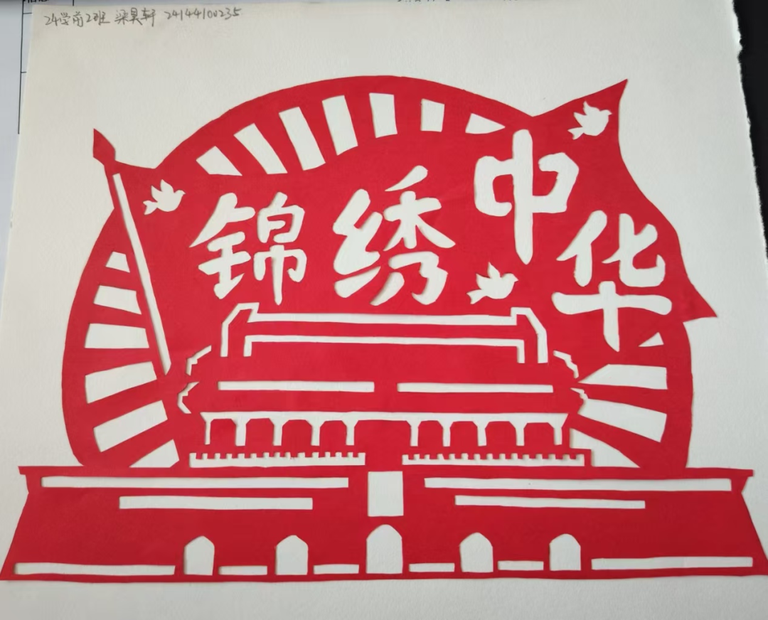 创作前期,同学们围绕“国庆”“中秋”两大主题展开创作。同学们深入挖掘节日文化内涵,从天安门、华表、五星红旗等国庆元素,再到“国泰民安”“花好月圆”等吉祥寓意,通过剪、刻、镂空等传统剪纸技法,将对祖国的祝福、对传统节日的热爱融入每一幅作品。