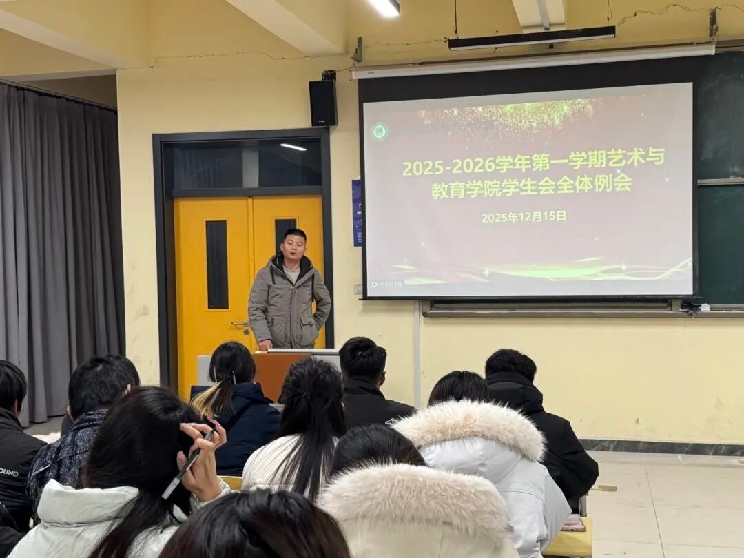 为进一步夯实工作作风、筑牢安全防线。2025年12月15日,艺术与教育学院在2号教学楼2128召开2025—2026学年第一学期艺术与教育学院学生会全体例会,艺术与教育学院团总支书记薄鹏,学生会指导老师刘龙飞,学生会全体成员参加本次例会。