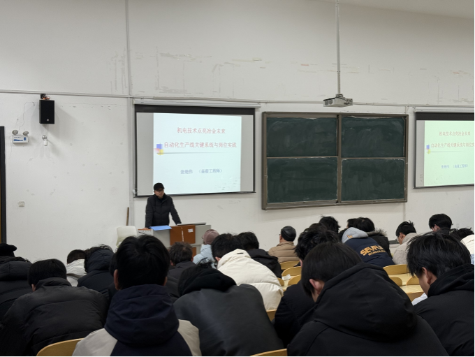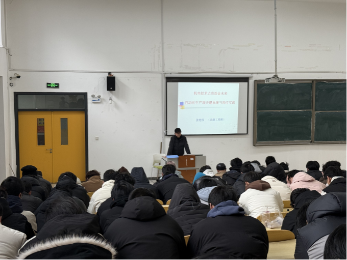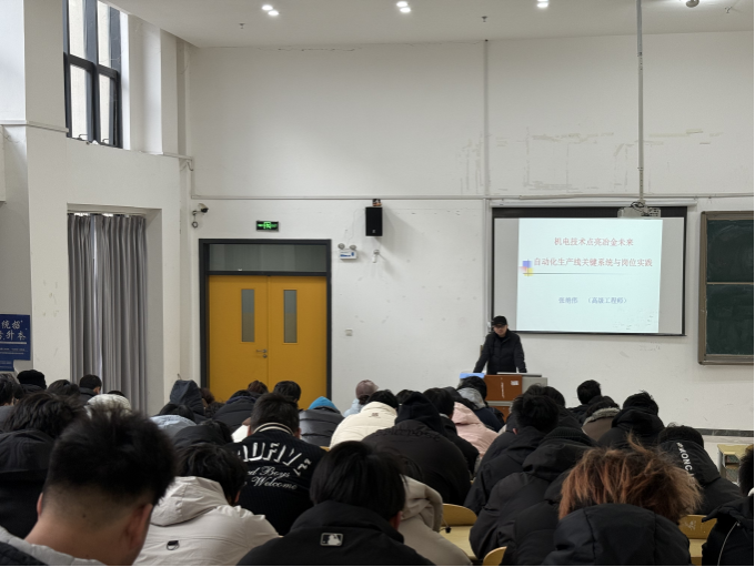 12月24日上午8:30,机电工程学院于2号教学楼2225教室成功举办了一场主题为“机电技术点亮冶金未来——自动化生产线关键系统与岗位实践”的学术讲座。本次讲座由高级工程师张艳伟老师主讲,吸引了众多学生与年轻教师积极参与,现场学习氛围热烈。