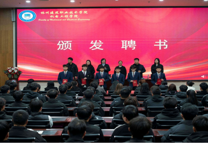 在仪式环节,大会为23级学生会干部代表颁发了荣誉证书,以此表彰他们过去一年为学生组织发展所付出的辛勤努力和作出的重要贡献。同时,大会为24级学生会干部代表颁发了聘任书,标志着机电工程学院新一届学生组织骨干团队正式组建并履新。