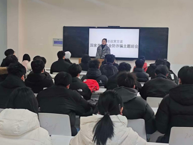 随后,班会进入核心环节。辅导员们结合奖助学金发放期间诈骗案件高发的特点,选取了近期发生的典型诈骗案例,用通俗易懂的语言,现场拆解各类诈骗套路。
